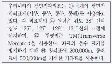 다음 우리나라에서 사용되고 있는 좌표계에 대한 설명 중 옳지 않은 것은?