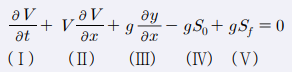 다음은 개수로 흐름의 운동량 방정식을 나타낸 것이다. 각 항들의 물리적 의미가 올바르지 못한 것은?