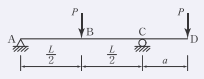 다음 내민보에서 B점의 모멘트와 C점의 모멘트의 절대 값의 크기를 같게 하기 위한