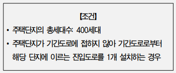 다음과 같은 조건에 있는 공동주택을 건설하는 주택 단지에 설치하여야 하는 진입도로의 최소 폭은?