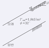 그림과 같이 c=0인 모래로 이루어진 무한사면이 안정을 유지(안전율≥1)하기 위한 경사각