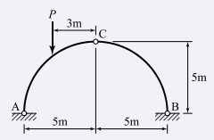 그림과 같은 반원형 3힌지 아치에서 A점의 수평반력은?