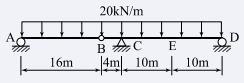 그림과 같은 겔버보의 E점(지점 C에서 오른쪽으로 10m 떨어진 점)에서의 휨모멘트 값은?