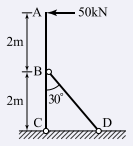 그림과 같은 구조물의 BD부재에 작용하는 힘의 크기는?