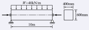 다음 그림과 같이 W=40kN/m 일 때 PS강재가 단면 중심에서 긴장되며 인장측의 콘크리트 응력이 “0”이 되려면 PS 강재에 얼마의 긴장력이 작용하여야 하는가?