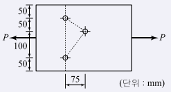 그림과 같은 두께 19mm 평판의 순단면적을 구하면? (단, 볼트구멍의 직경은 25mm)