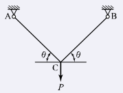다음 그림과 같은 구조물에서 C점의 수직처짐은?(단, AC 및 BC 부재의 길이는 L, 단면적은 A, 탄성계수는 E이다.)
