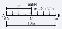 다음 그림과 같은 보에서 C점의 휨 모멘트는?