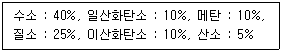 어떤 연료 가스를 분석하였더니 보기와 같았다. 이 가스 1\ \rm Nm^3를 연소시키는 데 필요한 이론산소량은 몇 \rm Nm^3인가?