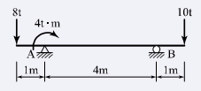 내민보에 그림과 같이 지점 A에 모멘트가 작용하고, 집중하중이 보의 양 끝에 작용한다. 이 보에 발생하는 최대 휨모멘트의 절대값은?