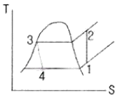 다음 T-S 선도에서 냉동사이클의 성능계수를 옳게 나타낸 것은? (단,