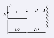 그림과 같은 캔틸레버 보에서 A점의 처짐은?(단, AC 구간의 단면2차모멘트는 I 이고 CB 구간은2I 이며, 탄성계수 E는 전 구간이 동일하다.)