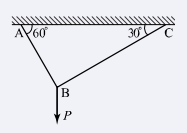 그림과 같은 구조물에서 부재 AB가 6 t의 힘을 받을 때 하중 P의 값은?
