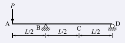 L이 10m인 그림과 같은 내민보의 자유단에 P=2 t의 연직하중이 작용할 때 지점 B와 중앙부 C점에 발생되는 모멘트는?