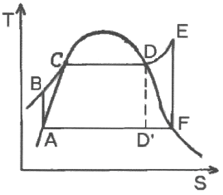 다음 그림은 어떤 사이클에 가장 가까운가? (단, T는 온도, S는 엔트로피이며, 사이클 순서는 A→B→C→D→E→F→A 순으로 작동한다.)