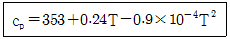 어떤 기체의 정압비열(c_p)이 다음 식으로 표현될 때 32\ ℃800\ ℃ 사이에서 이 기체의 평균정압비열(\overline{c_p})은 약 몇 \mathrm{kJ/(kg\cdot ℃)}인가? (단, c_p의 단위는 \mathrm{kJ/(kg\cdot ℃)}이고, T의 단위는 이다.)
