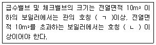 다음은 보일러의 급수밸브 및 체크밸브 설치 기준에 관한 설명이다. ( ) 안에 알맞은 것은?