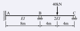 다음의 부정정 구조물을 모멘트 분배법으로 해석하고자 한다. C점이 롤러지점임을 고려한 수정강도계수에 의하여 B점에서 C점으로 분배되는 분배율