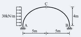그림과 같은 3회전단 구조물의 B점의 수평반력 H_B는?