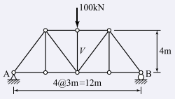 그림의 트러스에서 수직 부재 V의 부재력은?
