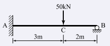그림과 같은 부정정보에 집중하중 50kN이 작용할 때 A점의 휨모멘트(M_A)는?