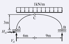 V_A=6.0kN(\uparrow ),H_A=9.0kN(\rightarrow )