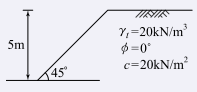 그림과 같은 점토지반에서 안전수(m)가 0.1인 경우 높이 5m의 사면에 있어서 안전율은?