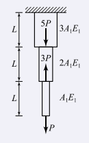 아래 그림과 같은 봉에 작용하는 힘들에 의한 봉 전체의 수직처짐의 크기는?