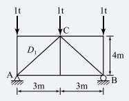 그림과 같은 정정 트러스에서 D_1부재(\overline{AC})의 부재력은?