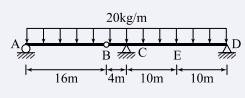 그림과 같은 게르버보의 E점(지점 C에서 오른쪽으로 10m 떨어진 점)에서의 휨모멘트 값은?