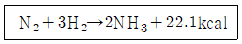 질소와 수소로 암모니아를 합성하는 반응의 화학반응식은 다음과 같다. 암모니아의 생성률을 높이기 위한 조건은?