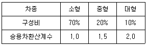 일반지형의 평지인 고속도로 기본 구간의 차종별 구성비와 승용차 환산계수가 아래와 같을 때, 중차량보정계수(fHV)는?