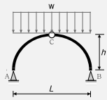 3회전단 포물선 아치에 그림과 같이 등분포하중이 가해졌을 경우 단면상에 나타나는 부재력의 종류는?