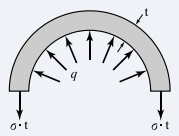 지름 d=120cm, 벽두께 t=0.6cm인 긴 강관이 q=2MPa의 내압을 받고 있다. 이 관벽 속에 발생하는 원환응력(\sigma )의 크기는?