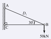 그림과 같은 크레인의 D_1부재의 부재력은?