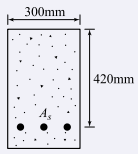 아래 그림과 같은 단면을 가지는 직사각형 단철근 보의 설계휨강도를 구할 때 사용되는 강도감소계수(\phi ) 값은 약얼마인가? (단, A_s=3176mm^2f_{ck}=38MPa, f_y=400MPa)