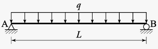 그림과 같은 단순보에 등분포하중 q가 작용할 때 보의 최대 처짐은? (단, EI는 일정하다.)