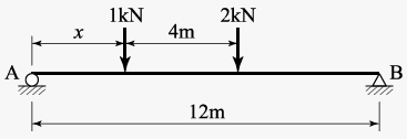 그림과 같은 단순보에서 두 지점의 반력이 같게 되는 하중의 위치(x)는?