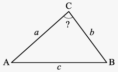 삼변측량을 실시하여 길이가 각각 a=1,200m, b=1,300m, c=1,500m이었다면 ∠ACB는?