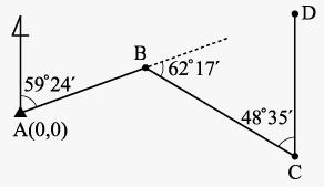 다음의 다각망에서 C점의 좌표는 얼마인가? (단,