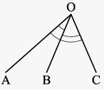 그림과 같이 2회 관측한 ∠AOB의 크기는 21°36′28″, 3회 관측한 ∠BOC는 63°18′45″, 6회 관측한 ∠AOC는 84°54′37″일 때 ∠AOC의 최확값은?
