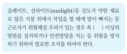 다음은 지붕 위에서의 위험방지를 위한 내용이다. 빈칸에 알맞은 수치로 옳은 것은?