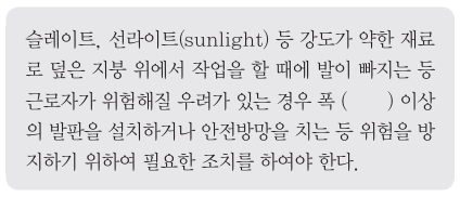다음은 지붕 위에서의 위험방지를 위한 내용이다. 빈칸에 알맞은 수치로 옳은 것은?