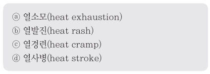 다음 중 열 중독증(heat illness)의 강도를 올바르게 나열한 것은?