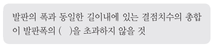 다음은 비계발판용 목재재료의 강도상의 결점에 대한 조사기준이다. ( )안에 들어갈 내용으로 옳은 것은?