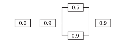 그림과 같은 시스템에서 전체 시스템의 신뢰도는 얼마인가? (단, 네모 안의 숫자는 각 부품의 신뢰도이다.)