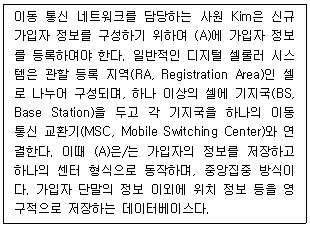 다음은 이동 통신(디지털 셀룰러 시스템)에 관한 내용이다. (A) 안에 들어가는 용어 중 옳은 것은?