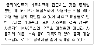 과거 IP관리 시스템에서 발전한 솔루션으로서 네트워크 통제를 강화한, 아래 설명하는 시스템은 무엇인가?