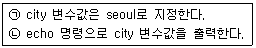 다음 조건으로 bash 셸에서 변수를 설정하고 확인하려 할 때 알맞은 것은?
