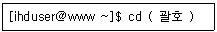 다음 중 ihduser 사용자가 본인의 홈 디렉터리로 이동하려고 할 때 ( 괄호 ) 안에 들어갈 내용으로 알맞은 것은?